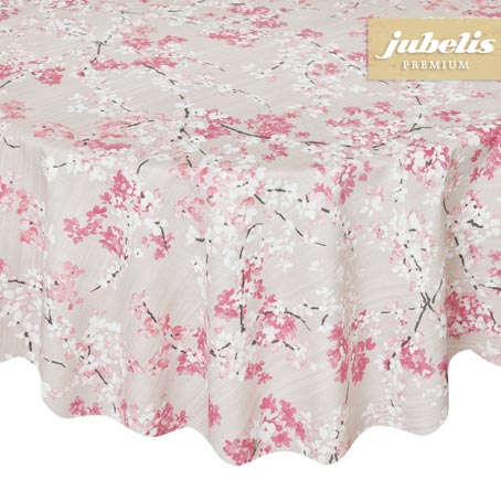 Kirschblüten stehen für den frischen Frühling und aufregende Farben. Die Schönheit dieser rosa Blüten ist grenzenlos und überall auf der Welt bekannt. Unterschiedliche Rosatöne zieren diese Tischdecke und schaffen eine unverwechselbare Optik. Die feinen braunen Zweige zwischen den Blüten sind detailgetreu und passend eingefügt. Auf dem hellen beigefarbenen Hintergrund wirken die Blüten besonders prächtig und werden optimal hervorgehoben. Der asiatische Touch ist besonders in europäischen Wohnungen und Häusern sehr beliebt. So kann auch diese beschichtete Baumwolltischdecke mit Kirschblüten in warmen Farbtönen Ihren Speiseraum erhellen. Liebevoll gestaltet bringt dieses Wachstuch den Frühling direkt zu Ihnen. Kombinieren Sie diese Tischdecke mit anderen rosafarbenen Dekorationen oder Pastelltönen. Ideal für den Innenbereich verzaubert sie jeden Raum. Das einzigartige Design schafft eine wohltuende Atmosphäre und eine friedliche und lockere Stimmung. Doch auch im Außenbereich ist das Tischtuch dank der wasserabweisenden Oberfläche sehr gut geeignet. Gerne konfektionieren wir Ihre Tischdecke mit Kirschblüten nach den von Ihnen gewählten Maßen.