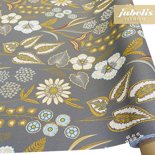 Diese beschichtete Tischdecke aus Baumwolle macht einen sehr edlen Eindruck, die verwendeten Farben und Muster ergeben hier ein besonderes optisches Endergebnis. Die Blumen- und Blättermuster verteilen sich gleichmäßig über den gesamten Tischbelag. Daher kann diese moderne Tischwäsche auch den Innenraum gestalterisch aufwerten. Dank der Produkteigenschaften ist diese Tischwäsche aber auch im Außenbereich einsetzbar. Denn die beschichtete Oberfläche ist leicht wasserabweisend und kann durch Abwischen gereinigt werden. Auch schützt die stabile Tischdecke die Oberfläche der Tischplatte wirksam vor Kratzern und Verschmutzung. Direkt neben der Produktabbildung finden Sie eine große Auswahl an Deckengrößen. Hier können Sie unkompliziert die gewünschte Größe auswählen. Benötigen Sie von dieser ansprechenden Baumwoll-Meterware eine größere Menge, so empfiehlt sich der Kauf einer ganzen Rolle.