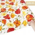 Die abwaschbare Tischdecke mit dem Motiv Emilia zeigt ein sommerliches Motiv mit farbenfrohen Lichtreflexen in den Blumen. Die Grundfarbe ist weiß und darauf sind verschiedene Blüten in den warmen Farbtönen gelb, orange und rot abgebildet, deren Stil an eine Malerei erinnert. Zwischen den großen Blüten wurden die Freiräume mit kleineren noch geschlossenen Blüten sowie verschiedenen Blättern gefüllt. Dadurch ist die Gestaltung sehr abwechslungsreich. Das Motiv ist nicht zu aufdringlich und damit bestens geeignet für sommerliche Tage, zum Beispiel auf dem Küchentisch, wo er direkt am Morgen für gute Laune sorgt. Durch die Vinylbeschichtung ist die Tischdecke unempfindlich und kann auch beispielsweise draußen im Garten beim Grillen oder dem Empfang der Familie auf der Terrasse aufgelegt werden. Es ist sehr empfehlenswert für die Freizeit und zaubert eine lockere und angenehme Atmosphäre mit Freunden oder der Familie.