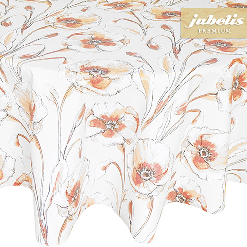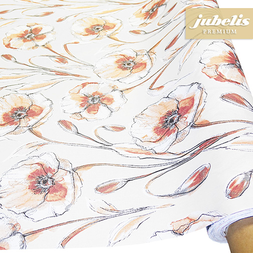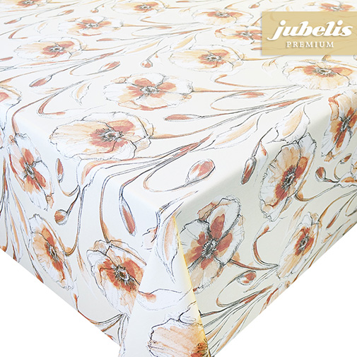 Diese floral gestaltete Tischdecke eignet sich nicht nur als Tischauflage für ihre Wohnung, sondern auch für den Einsatz im geschützten Außenbereich. Das klassische Blumenmotiv auf einem beigen Untergrund ergibt eine klassische Gesamtkomposition. Die Konturen des stark gezeichneten Blumenmusters und die verwendeten Farben passen gut zur beigen Grundfarbe. Durch diese optischen Eigenschaften ist diese Tischdecke besonders vielseitig einsetzbar und eignet sich nicht nur zur Gestaltung, sondern auch als Unterlage beim Servieren von Speisen und Getränken. Durch ihre leichte Oberflächenbeschichtung ist diese Tischdecke außerdem leicht zu reinigen und somit relativ unempfindlich gegen Verschmutzungen. Direkt neben der Produktabbildung finden Sie das Auswahlfenster, um die entsprechend gewünschte Größe und Form oder eine ganze Rolle dieses Tischbelags auszuwählen.