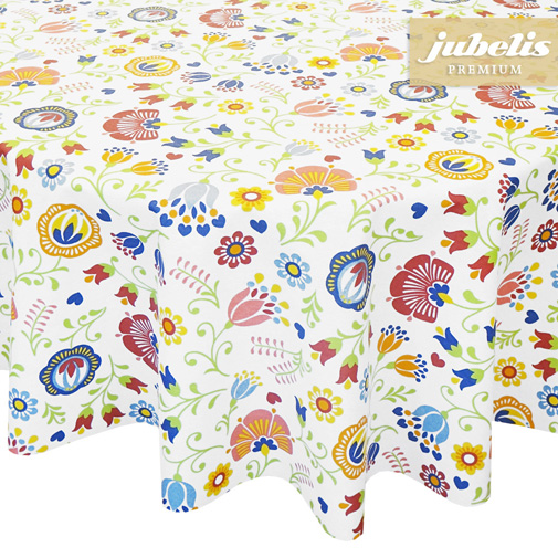 Die beschichtete Baumwolle abwaschbar Finja Tischdecke lässt durch ihre Tulpen die Liebe des Besitzers hochleben. Frühlingsgefühle sind mit ihr an der Seite garantiert. Die Decke eignet sich bestens als Geschenk zum Geburtstag. Auf blumige Grüße freuen sich schließlich die meisten Frauen zu jeder Jahreszeit. Die Tischdecke bietet den Vorteil, dass sie sowohl in der Wohnung als auch im Freien einsetzbar ist. Regnet es einmal, ist das für das Produkt kein Problem, da es Flüssigkeit erfolgreich abweist. Diese Eigenschaft ist auch im Innenbereich vorteilhaft. Sollte einmal jemand etwas versehentlich verschütten, lässt sich die Tischdecke leicht reinigen. Ideal ist die blumige Tischdecke daher für Frauen mit kleinen Kindern.