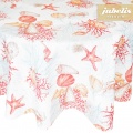 "Unter dem Meer" – jetzt ganz einfach auf Ihrem Tisch. Sagen Sie Krabbe, Koralle, Muschel, Seepferdchen und Seestern hallo. Die freundlichen Farbtöne Orange und Rosa sorgen für ein farbenfrohes Erlebnis am Esstisch. Mit ihrem sommerlichen Flair eignet sich diese Tischdecke hervorragend, um am Campingtisch eine spritzige Limonade oder ein Eis mit der Familie und Freunden zu genießen. Sie passt aber auch hervorragend zu einer maritim gehaltenen Inneneinrichtung in den eigenen vier Wänden. Sollte mal ein Spritzer daneben gehen, ist durch das abwischbare Material mit ein bisschen Wasser wieder alles im Lot.