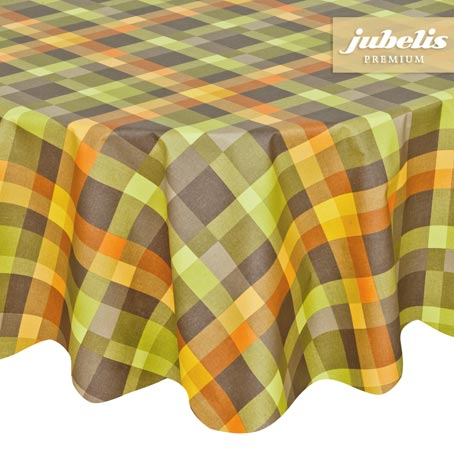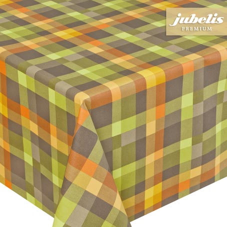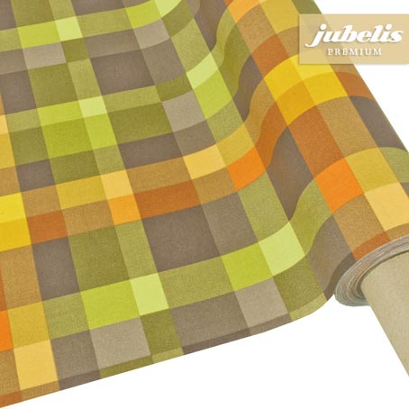 Das hübsche klassische Muster der abwaschbaren Baumwolltischdecke Pepe in Grün besteht aus einem traditionellen Karo in aufgelockerter Form. Aufgrund der bunten Farbgestaltung dieser schicken Decke ist das fröhliche zusammensitzen am Tisch garantiert. Neben hell- und dunkelgrünen sowie hell- und dunkelgrauen Karos stellen außerdem besonders die orangen und gelben Karos in unterschiedlicher Größe auffällige Highlights dar. Die attraktive Tischdecke passt überall hin und bietet sowohl auf dem Tisch im Wintergarten, auf der Terrasse und dem Balkon als auch im Übrigen Wohnbereich die perfekte Dekoration zu einem schlichten Geschirr.