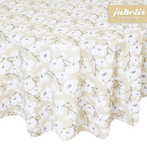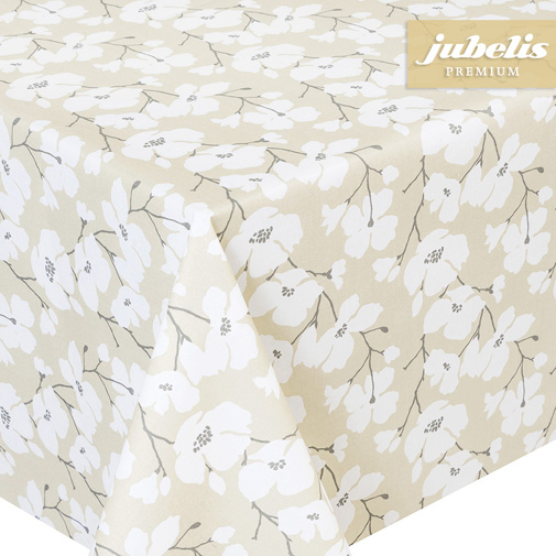 Wunderschöne Blumen, die sehr detailreich daherkommen, machen diese Tischdecke zu einem traumhaften Tischschmuck für jede Gelegenheit. Da dieses Tischtuch nicht durch zu viele Farben überfrachtet wird, eignet es sich auch für stilvolle Hochzeiten und andere Feiern, die einen festlichen Charakter haben sollen. Der in Beige gehaltene Hintergrund dieser Tischdecke bringt die weißen Blüten, welche an schwarzen Ästen hängen, optimal zu Geltung, sodass dieses Tischtuch immer eine gute Figur macht. Selbstverständlich ist diese Tischdecke auch ein Star im Alltag und verleiht jedem Zimmer, in dem sie eingesetzt wird, eine sehr angenehme Atmosphäre. Darüber hinaus ist sie auch für Terrassen hervorragend geeignet und unterstreicht gekonnt die Stimmung eines Frühstücks mit der Familie im Garten.