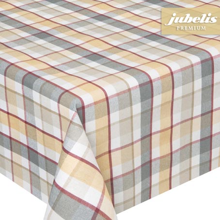 Bei diesem Tisch Belag handelt es sich um eine, aus beschichteter Baumwolle hergestellte Tischdecke in ansprechendem Streifenmuster. Die Tischdecke ist sowohl in eckiger als auch in runder Ausführung vorhanden und sticht besonders durch Ihr farbenfrohes Muster aus Rot und verschiedenen Sandtönen hervor. Da Streifen wieder voll im Trend sind, können Sie mit diesem Tisch Belag allein rein optisch nichts falsch machen. Das Produkt ist außerdem aufgrund der Beschichtung besonders resistent gegenüber Schmutz und jeglicher Art von Flüssigkeiten. Es reicht ein feuchter Lappen aus, um Sie mit einem Handstrich zu reinigen. Die Decke ist wunderbar draußen nutzbar und wird bestimmt der Hingucker auf Ihrer nächsten Gartenparty. Auch für den Hausgebrauch eignet sich die Decke. Vor allem mit Kindern ist es von Vorteil eine derart leicht zu reinigende Tischecke zu besitzen.