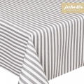 Durch die Verwendung von beschichteter Baumwolle als Grundmaterial ist diese Tischdecke äußerst unanfällig. Sie ist abwaschbar und bügelfrei, dieses pflegeleichte Modell eignet sich somit für den Gebrauch sowohl im Innen- als auch Außenbereich für gewerbliche und private Zwecke. Nicht nur das Material und die Verfügbarkeit in verschiedenen Zuschnitten machen diese Tischdecke zu einem wahren Allroundmodell. Auch das Muster leistet dazu seinen Beitrag. Die grauen Streifen auf weißem Grund sind zeitlos und flexibel einsetzbar. Das Muster wirkt modern, ohne dabei jedoch zu unruhig zu wirken. Die klare Struktur und neutrale Farbgebung erlaubt eine Kombination ganz nach Belieben.