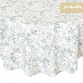 Der gedeckte Tisch wirkt mit dem Tischtuch Jette aus beschichteter Baumwolle gleich nochmal so schön. Es zeichnet sich besonders dadurch aus, dass es zwar einerseits mit einem sehr belebenden floralen Muster bedruckt ist und wiederum andererseits mit feinen Grau- und Grüntönen aufwartet. Auf diese Weise kommt das edle Kaffeegeschirr so richtig zur Geltung. Das hochwertige Tafeltuch wirkt auf dem Tisch im Esszimmer genauso elegant wie auf der Terrasse oder dem Balkon. Da die Decke in allen Größen und auch als ganze Rolle angeboten wird, erhält jeder Tisch die perfekte Dekoration.