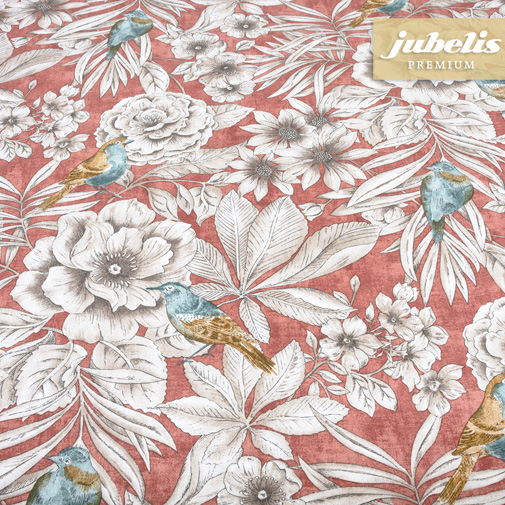 Dieser geschmackvolle beschichtete Tischbelag ist sowohl als Tischdecke als auch als komplette Rolle erhältlich. Das wunderschöne Blumenmuster mit seinen erdigen Farben eignet sich besonders gut für die Nutzung im Außenbereich, sei es nun auf dem Balkon, auf der Terrasse oder im heimischen Garten. Deshalb besitzt das Baumwoll-Gewebe auch eine leicht wasserabweisende Beschichtung, damit weder ein kurzer Regenschauer noch ein umgeworfenes Getränk auf der Grillparty dem Tischbelag etwas anhaben können. Die Vögel, die das Blumenmuster zieren, bringen zusätzlich Leben in das Ensemble und lassen sofort frühlingshafte Gefühle aufflammen. Nicht nur der Gartentisch lässt sich damit verschönern, sondern auch der Partykeller oder die Biertischgarnitur, die man zum Grillen mit Freunden in die Garagenauffahrt gestellt hat.