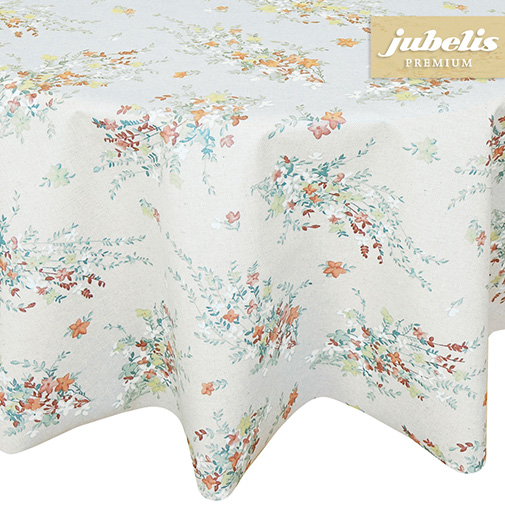 Dieser naturfarbene Tischbelag besitzt ein sehr fein gezeichnetes Blumenmotiv. Farben und Muster zusammen ergeben eine gefällige Gesamtkomposition. Für diese beschichtete Baumwolle gibt es verschiedene Anwendungsbereiche. Dank ihrer leichten Oberflächenbeschichtung kann diese sowohl im Innen- als auch im Außenbereich zur Anwendung kommen. Insgesamt ist diese beschichtete Baumwolle als Tischdecke sehr robust und herkömmlichen Stofftischdecken in Sachen Pflegeleichtigkeit überlegen. Denn einfaches Abwischen reicht aus, um diese Tischwäsche von leichten Verschmutzungen zu befreien. Nutzen Sie auch diese schöne und praktische Tischdecke aus beschichteter Baumwolle und vereinfachen Sie so Ihren Alltag. Direkt neben der Produktabbildung finden Sie das Auswahlfenster, um die entsprechend gewünschte Größe und Form auszuwählen.