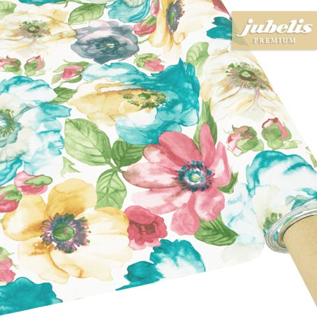Diese beschichtete Baumwolltischdecke besticht durch ihr schickes Design. Große Blumenmuster in milden Farben heben die Tischdecke gut hervor und hinterlassen einen positiven Eindruck. Die Tischdecke lässt sich bestens für einen Gartentisch verwenden, da sich das Blumenmuster perfekt in die Umgebung einfügt. Bei passender Abstimmung mit der Wohnlandschaft, kann diese Tischdecke ebenfalls auf Ihrem Esstisch überzeugen. Das Muster ist überwiegend in hellen, sanften Farben auf einem weißen Hintergrund zu finden. Türkis, Gelb, Grün und Rosa vermitteln einen angenehmen sommerlichen Eindruck. Das Muster überzeugt ebenso durch seine abwechslungsreiche Anordnung an schönen Blumen. Das Material ist hervorragend abwaschbar und eignet sich deshalb perfekt als Tischdecke.