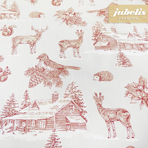Die perfekte Tischdecke für Liebhaber von Tieren ist hier zu finden, denn mit dieser beschichteten Baumwolle kann man nicht nur zum Adventsfrühstück auftrumpfen. Das dichte Baumwollgewebe sorgt für Langlebigkeit und macht aus der strapazierfähigen Tischdecke ein ideales Stück für den Innen- aber auch für den Außenbereich. Dank des winterlichen Motivs mit verschneiter Hütte und detailreich gestalteter Tiere kann man mit dieser Tischwäsche zum Frühstück im Advent, aber auch zum eleganten Abendessen zum heiligen Abend auftrumpfen. Mit dem stimmungsvollen Motiv ist die Tischdecke ein echter Allrounder in der kalten Jahreszeit. Dank der beschichteten Oberfläche lässt sich das Stück schnell und unkompliziert reinigen, sodass sie lange im Einsatz bleiben kann. Perfekt also für die weihnachtliche Zeit, in der es oft festlich und hoch hergeht.