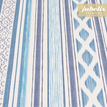 Die abwaschbare Tischdecke Diara hat einiges zu bieten. Hier harmonieren zarte, kräftige und leicht verwaschene Längsstreifen miteinander. Ein klassisches Streifen-Dessin, das die schönsten Blautöne toll in Szene setzt. Zartes Azurblau, kombiniert mit mittel- und kräftig blauen Farben, immer im leicht verwaschenen Jeans-Look, versprühen ein maritimes Flair. Es erinnert an Sommer, Sonne und jede Menge Meer. Feine, filigrane Ornamente mit einem leichten orientalischen Touch lockern das farbenfrohe und frische Aussehen des Tuches nochmals auf. Geben Sie Ihrer Essenstafel, dem Terrassentisch oder dem Balkon-Stehtisch einen neuen Anstrich. Ob beim großen 4-Gänge-Menü und zum kleinen téte á téte beim Sektempfang. In gemütlicher Grill-Runde oder zum morgendlichen Frühstück. Jederzeit ist dieses farbenfrohe Wachstuch mit extradickem Geweberücken ein toller und außergewöhnlicher Blickfang. Geeignet für jedermann der unkompliziert ist, dennoch mit Stil und gutem Geschmack glänzen möchte. Mit dem Premium-Wachstuch Diara blau fangen Sie ein Stück erfrischende Meeresbrise ein. Träumen Sie sich an Ihren letzten Urlaubsort und schwelgen Sie in unvergesslichen Erinnerungen.