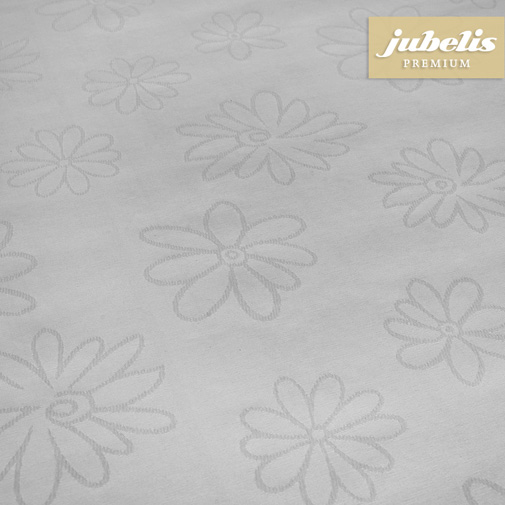 Der textile Luxus Tischbelag Messina Pastellgrau basiert auf einem hochwertigen Baumwollstoff, der nach neuesten Technologien beschichtet wurde. Das macht dem Stoff wasserabweisend und erhält dennoch die textile und feine Griffigkeit. Die pastellgraue Tischwäsche wirkt durch die abstrakten, Ton in Ton, in den Stoff eingewebten unterschiedlichen Blüten dezent und trotzdem frisch. Sie passt besonders gut in ein helles Ambiente und lässt sich mit einfarbigem oder bunten Geschirr sowie mit individuellen Dekorationen kombinieren. In der heimischen Küche kann der Tisch deshalb zum Blickfang werden oder bleibt dezent im Hintergrund, eine Wirkung, die auch im Gastronomie- und Outdoor-Bereich erzielt werden kann. Nachhaltigkeit zum Schutz unserer Umwelt und Kosten sparen ist ein weiterer Vorzug dieser Tischwäsche.