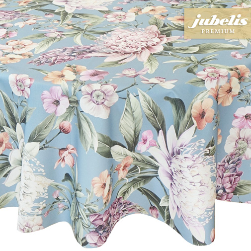 Holen Sie sich den Sommer auf den Tisch und genießen Sie ein wunderschönes florales Tischtuch in traumhaft bunten Sommerfarben. Das hochwertig verarbeitete Tischtuch aus luxuriösem Baumwollstoff schmückt den Tisch bei einem sommerlichen Frühstück oder schützt Ihre Gartenmöbel ebenso beim gemeinsamen Grillen. Mit diesem Baumwolltuch mit beschichteter Oberfläche müssen Sie keine Flecken fürchten, denn das Tischtuch weist Feuchtigkeit ab. Wenn doch einmal etwas danebengeht, ist das kein Problem, denn das Tuch lässt sich mit einem feuchten Tuch abwischen oder kann auch unkompliziert bei 30 Grad gewaschen werden. Das florale Muster mit himmelblauem Hintergrund sorgt für gute Laune an der Tafel. Ob im Innenbereich oder auch draußen im Garten, mit diesem Muster sorgen Sie für Sommerstimmung am Tisch.