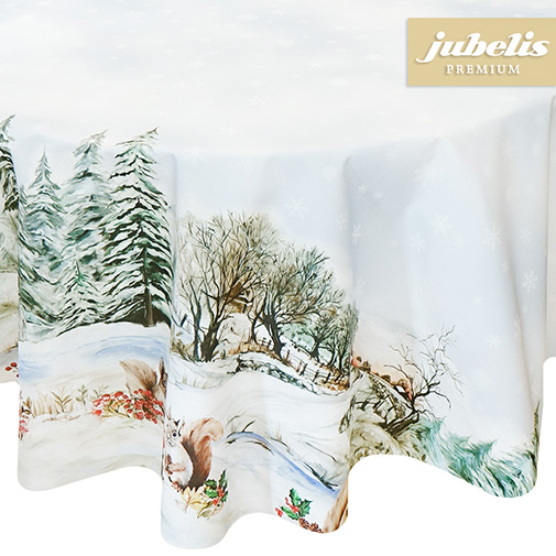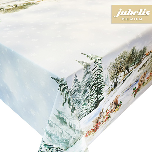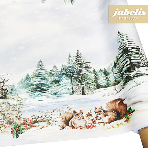 Das alles ist kein Naturgemälde, sondern die Szenerie einer Winterlandschaft, einer besonderen Tischdecke für die Wintermonate. Der luxuriöse Baumwollstoff ist leicht beschichtet und somit relativ unempfindlich und pflegeleicht. Der detaillierte Motiv-Streifen befindet sich jeweils an den Außenseiten des Tischbelags. Mit einem feuchten Tuch ohne großen Aufwand kann diese also gesäubert werden. Die Tischdecke ist im Inneren, aber auch im geschützten Außenbereich einsetzbar. Sie passt in klassische und moderne Wohnbereiche gleichermaßen. Eine große Anzahl an auswählbaren Größen oder die Lieferung als Meterware bietet für jeden Tisch die passende Tischdecke. Mit entsprechender Rabattierung finden Sie von diesem besonderen Tischbelag auch die Auswahlmöglichkeit einer ganzen Rolle an Meterware.