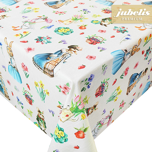 Textiler Luxus für gute Stimmung: So lässt sich das Modell Pasqua kurz beschreiben. Verteilt über die gesamte Oberfläche entdecken Sie bei diesem Dekor Hasen und Enten, die mit verschiedenen Früchten und Blumen-Elementen komplettiert werden. Das hübsche Design eignet sich für verschiedene Einrichtungsstile. Positiv stimmen die fröhlichen Abbildungen des Musters. Auf dieser Tischdecke können Sie immer wieder neue Details entdecken. Dank der leicht wasserabweisenden Oberflächenbeschichtung lassen sich Verschmutzungen relativ einfach abwischen. Diese Tischdecke bietet vielseitige Anwendungsmöglichkeiten für verschiedene Anlässe und Einrichtungsstile. Ob für den Innen- oder im geschützten Außenbereich, die abwaschbare Tischwäsche aus beschichteter Baumwolle ist in vielen Bereichen einsetzbar. Nutzen Sie die Vorzüge dieses dekorativen und praktischen Tischbelags.