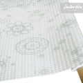 Dieses Wachstuch besitzt ein Muster, in dem ein feines Karomuster mit Ornamenten und Blütenmotiven kombiniert wurde. Das optische Ergebnis kann sich sehen lassen. So kann diese Tischdecke mit ihrem interessanten Muster mit vielfältigsten Einrichtungsstilen kombiniert werden. Der abwaschbare Tischbelag besitzt eine glatte und wasserabweisende Oberfläche. Einfaches Abwischen genügt, um Verschmutzungen von der Tischdecken-Oberfläche zu entfernen. Auf der Rückseite dieses Tischbelags befindet sich eine Vliesschicht, die empfindliche Tischoberflächen schützt. Somit ist dieses schöne Wachstuch sowohl für private als auch gewerbliche Anwendungen im Innen- und Außenbereich eine praktische und robuste Tischwäsche. Das Wachstuch ist hier als passgenaue Tischdecke, Meterware oder ganze Rolle mit einem zusätzlichen Rabatt erhältlich. Neben der Produktabbildung können Sie die gewünschte Größe und Form einfach auswählen. Profitieren Sie von dieser praktischen und schönen Tischwäsche aus Wachstuch mit ihrem guten Preis-Leistungsverhältnis.