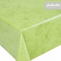 Der Tischbelag aus Wachstuch hat die Grundfarbe Limonengrün. Die frisch und frühlingshaft wirkende Decke zeigt eine feine Stoffstruktur, darauf befinden sich viele Blüten in etwas dunklerem Grün. Das Design "Palmas" wird in vielen weiteren Farben angeboten. Die grüne Tischdecke passt sehr gut zu einem hellen, modernen Wohnstil, aber auch für den Garten oder die Terrasse ist das Wachstuch sehr gut geeignet. Die Tischdecke kann mit vielen anderen Farben kombiniert werden und ist somit sehr vielseitig. Auch kann durch andere Farbkombinationen der Stil geändert werden. Auf der eine Seite kann es modern gehalten werden und auf der anderen eher leger. Somit kann die Tischdecke dauerhaft oder zum Beispiel an Ostern oder für Gartenpartys verwendet werden. Aber auch zum Basteln ist sie sehr gut geeignet. Mit dem Kauf dieses Wachstuchs sind Sie gut beraten. Die grüne Tischdecke ist vielseitig, flexibel, ansprechend und belastbar. Sie lässt sich bei Bedarf einfach zuschneiden und Sie werden ganz sicher lange Freude daran haben.
