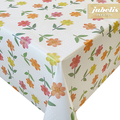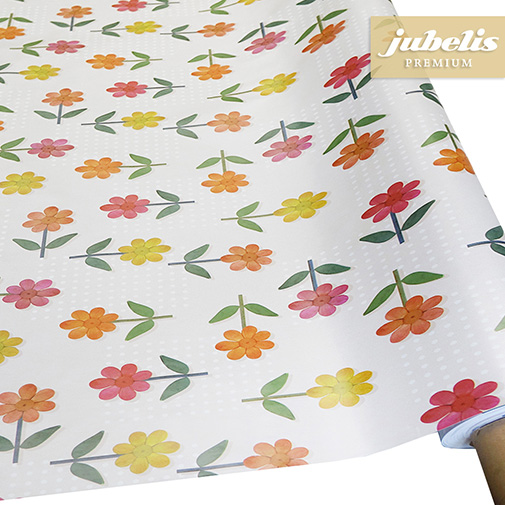 Freundlich und aufgeräumt, so präsentiert sich diese Tischdecke aus hochwertigem Wachstuch, die durch viele Blumen in ihrem Muster sehr einladend ist. Auch wenn diese Decke das gesamte Jahr über jedem Raum, in dem sie anzutreffen ist, eine frühlingshafte Atmosphäre verleiht, ist das vorhandene Muster dieser Tischdecke farblich nicht so aufdringlich. Egal welche Tischgröße und Formen Sie benötigen, dieses schöne Muster wird an Ihre Tischgröße angepasst. In der Größenauswahl direkt neben der Produktabbildung können Sie die gewünschte Deckengröße auswählen. benötigen Sie von diesem schönen Wachstuch eine größere Menge, so empfiehlt sich hier der Kauf einer ganzen Rolle. Die glatte Oberfläche der beschichteten Tischdecke lässt sich durch feuchtes Abwischen ganz einfach säubern und die Vliesunterschicht schützt die Tischoberfläche wirksam.