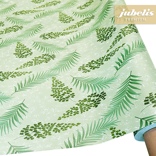 Das Wachstuch überzeugt mit seinem floralen Muster in verschiedenen Grüntönen, die von sanft gezeichneten, stilisierten Blättern umschmeichelt werden. Durch ihre gelungene Anordnung setzen sie schöne Akzente und unterstreichen den natürlichen Charakter dieser Tischdecke. Das elegante und dennoch natürlich wirkende Muster versprüht am Tisch eine ruhige und zugleich ausgleichende Stimmung. Eine zurückhaltende beige Grundfarbe dient dabei als Unterlage der Musterelemente. Dabei lässt das Wachstuch Modell Bresso noch genügend Spielraum, um sich bei der Tischdekoration kreativ auszuleben. Die verschiedenen anderen Farbtöne des Muster sollen hier auch nicht unerwähnt bleiben. In der Größenauswahl direkt neben den Produktabbildungen können Sie Ihre Deckengröße auswählen. Benötigen Sie von diesem Wachstuch eine größere Menge, so empfiehlt sich hier der Kauf einer ganzen Rolle.