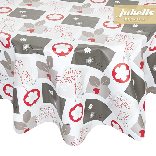 Wer sein Ambiente mit einem farbenfrohen, aber dennoch edel wirkenden Hingucker verschönern möchte, der ist mit dem Tischtuch Caserta gut beraten. Das Wachstuch überzeugt dabei aus einer Kombination von Anthrazittönen und sattem Rot auf einem klassisch weißen Untergrund. So sind stilisierte Blüten und Blätter über die gesamte Tischdecke verteilt und befinden sich entweder auf dem weißen Untergrund oder in nebeneinander angeordneten Rechtecken, die in edlen Anthrazittönen daherkommen, wieder. Dazwischen fliegen noch saftig rote Herzen durch die Szenerie, welche zudem für etwas Auflockerung sorgen. Die Tischdecke eignet sich hervorragend für den Alltag oder festliche Anlässe, da die stilisierten Blätter und Blüten sehr hochwertig und modern wirken. Die Herzen im knalligen Rot sorgen darüber hinaus noch für eine Extraportion Romantik am Tisch und unterstreichen die Gastfreundschaft. Dank der abwaschbaren Beschichtung lässt sich das Wachstuch Caserta auch problemlos mit einem feuchten Lappen reinigen.
