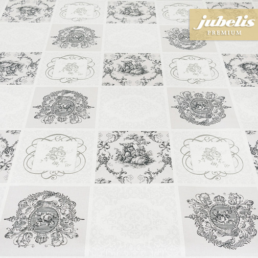 Modell Imperial hält, was der Name verspricht. Das elegante und strukturierte Design wirkt dank seiner Schäferszenen und Rosenblüten sehr fein und lädt zu wiederholtem Betrachten ein. Dank der Unterteilung in Quadrate und des farblichen Wechsels von Hellgrau zu Dunkelgrau, ist das Premium-Wachstuch ruhig und harmonisch. Wollen Sie ein festliches Kaffee- oder Teetrinken im Kreise mit lieben Freunden veranstalten? Dann wählen Sie zu diesem hochwertigen Untergrund ein Porzellan in Bone China. Sitzen Sie dagegen mit Ihren Kindern und Enkelkindern zusammen, darf es farblich auch kontrastreich zugehen. Mit farbigem Geschirr setzen Sie schöne Kontrapunkte und sorgen für eine fröhliche Stimmung miteinander. Dieses Design passt in ein klassisch-elegantes Ambiente oder in einen modernen Haushalt mit antiken Accessoires.