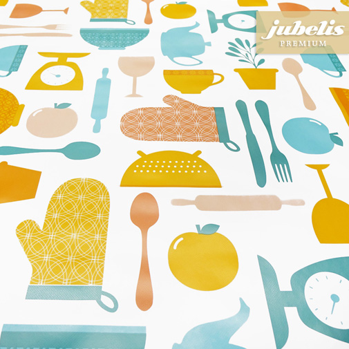 Farbenfrohes Küchenmuster - Premium-Wachstuch Lodi