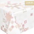 Ein schön gedeckter Tisch beginnt mit der attraktiven Tischdecke als dekorative Grundlage. Das reizvolle Premium Wachstuch Pistoia ist mit lachsfarbenen Elementen gestaltet, die an der kunstvollen Stickerei im Kreuzstich unserer Großmütter erinnert. Mit dem lachsfarbenen Muster, das mal als blasse und mal als starke Vierecke in Erscheinung tritt, ist ein abwechslungsreicher Blickfang entstanden. Dazwischen sind sparsam verteilte Farbtupfer in Pink zu entdecken. Die Essecke erhält durch das hochwertige Wachstuch Pistoia ein fröhliches Flair. Ebenso kann es aufgrund der strapazierfähigen Beschaffenheit auf dem Balkon oder der Terrasse aufgelegt werden.