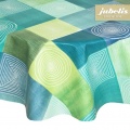 Ein weiteres attraktives und sehr beliebtes Wachstuchmuster in unserem Onlineshop ist das Design Juli. Es ist in warmen Erdtönen sowie hier im kühleren Aqua erhältlich. Alle diese Farbausführungen sind sehr harmonisch aufeinander abgestimmt. Verschiedene Grün- und Blau-Schattierungen wirken frisch und beleben jede Tischdekoration. Das Muster besteht dabei aus verschiedenfarbigen Karos. Vereinzelt sind in diesen Vierecken grafische Elemente in Weiß enthalten. Ein pflegeleichter Tischbelag in außergewöhnlicher Qualität und Materialstärke, der in Deutschland hergestellt wird. Zur Verwendung im Freien geeignet, da wetterfest. Die Rückseite ist mit einer Gewebeschicht versehen. Der Tischbelag Juli ist in einer türkis–blaugrünen Patchwork-Optik erhältlich. Hierbei sind verschiedene Quadrate mit dezenten Streifen, eckigen und runden Spiralen ausgefüllt und aneinander gesetzt. Vereinzelte eckige Elemente in der Farbe Weiß setzen dabei Akzente. Das Motiv als Gesamtbild wirkt harmonisch und beruhigend. Dieses sehr robuste Tischtuch kann sowohl im Innen- wie auch im Außenbereich angewendet werden. Es kann ideal für den täglichen Gebrauch im Essbereich verwendet werden. Für eine Nutzung als Tischtuch im Außenbereich ist es ebenso geeignet wie für eine gewerbliche Nutzung. Die Wachsdecke Juli passt sehr gut zu hellen oder weißen Möbeln in einer schlichten Ausführung. Auch zu einer Gartengarnitur aus hellem Kunststoff oder Metall kann sie gut kombiniert werden. Eine Dekoration auf diesem Tischtuch mit Accessoires und Servietten sollte schlicht und dezent in einem Unifarbton ausfallen. .