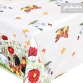 Nicht nur Halter von Hühnern haben an dieser Tischdecke ihre Freude. Denn die sehr lebensnah dargestellten Hühner auf diesem Tischtuch verleihen jedem Raum eine schöne Atmosphäre und ziehen vor allem Kinder in ihren Bann. Die neben den Hühnern und schönen Blumen auf der Wachstuchtischdecke abgebildeten Schmetterlinge verbreiten darüber hinaus eine frühlingshafte Atmosphäre. Aus diesem Grund macht dieses Tischtuch zum Beispiel bei einem Frühstück auf der Terrasse eine gute Figur. Aber auch eine liebevoll gestaltete Landhausküche erstrahlt durch diese Tischdecke in einem neuen Glanz. Da die Hintergrundfarbe dieses Tischtuchs Beige ist, strahlt es eine gewisse Frische aus. Ergänzt wird das Erscheinungsbild durch schwarze und vor allem rote Farbtupfer, die ihm das gewisse Etwas verleihen.