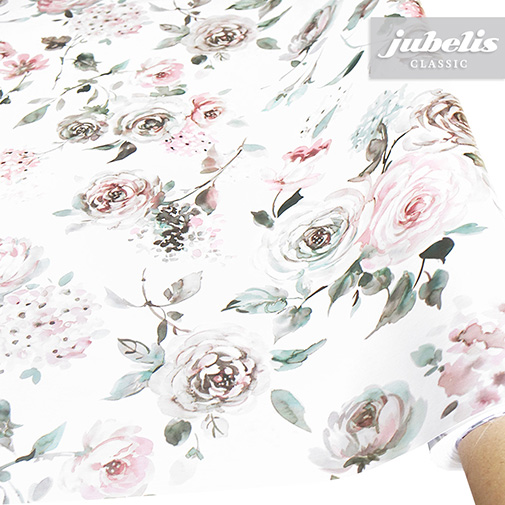 Dieses Wachstuch bietet ein besonderes Rosenmuster auf dem alle Bestandteile in angenehmen Farben gehalten sind. Das Rosenmuster passt zu vielen Einrichtungsstilen und dank des hellem Untergrunds ist die Tischdecke freundlich und immer noch relativ dezent. Der abwaschbare Tischbelag besitzt eine glatte und wasserabweisende Oberfläche. Einfaches Abwischen genügt, um Verschmutzungen von der Tischdecken-Oberfläche zu entfernen. Auf der Rückseite dieses Tischbelags befindet sich eine Vliesschicht, die empfindliche Tischoberflächen schützt. Somit ist dieses schöne Wachstuch sowohl für private als auch gewerbliche Anwendungen im Innen- und Außenbereich eine praktische und robuste Tischwäsche. Das Wachstuch ist hier als passgenaue Tischdecke, Meterware oder ganze Rolle mit einem zusätzlichen Rabatt erhältlich. Neben der Produktabbildung können Sie die gewünschte Größe und Form einfach auswählen. Profitieren Sie von dieser praktischen und schönen Tischwäsche aus Wachstuch mit ihrem guten Preis-Leistungsverhältnis.