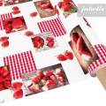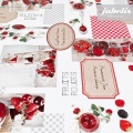 Eine Tischdecke vermittelt immer einen guten Eindruck und ist daher zu nutzen. Es ist wichtig, dass Sie eine passende Tischdecke zum richtigen Anlass haben. Möchten Sie etwa eine Gesellschaft zum Kaffee einladen oder Sie besitzen ein Lokal, das viele schöne Kuchen und Torten verkauft, dann ist dieser Tischbezug für Sie genau richtig. Auf diesem Tischbezug sind Erdbeeren in verschiedenen Variationen zu sehen. Mal sind diese aufgeschnitten und laden zum Reinbeißen ein, mal findet der Betrachter sie in einem schönen Körbchen vor. Das fruchtige Rot macht Appetit auf Erdbeeren oder andere süße Früchte. Die Karomuster, die sich zwischen den Bildern befinden und in Rot sowie Weiß gehalten sind, lockern die Optik auf und machen sie dadurch noch interessanter. Sie können dieses Tischtuch leicht reinigen und daher oft einsetzen. Es ist dafür nur ein feuchter Lappen notwendig. Sie erhalten die Ware auch als Rolle und können damit beispielsweise Bierbänke auf leichteste Weise aufwerten.