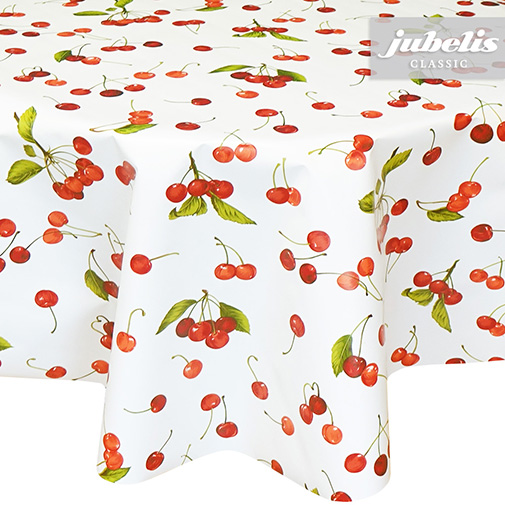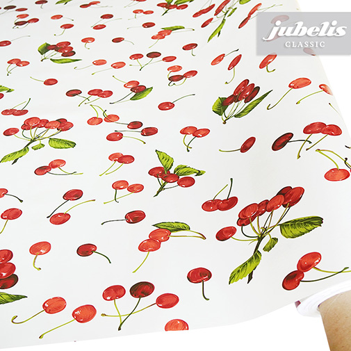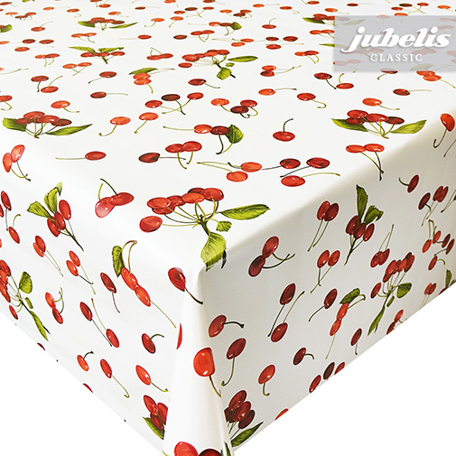 Dieses Wachstuch besitzt ein schönes Kirschenmotiv auf hellem Untergrund. Aber nicht nur für den Küchenbereich ist dieser schöne Tischbelag mit seiner abwaschbaren Oberfläche geeignet. Bringen Sie mit dieser farbenfrohen Tischdecke aus Wachstuch gute Stimmung auf Ihren Tisch. Der abwaschbare Tischbelag besitzt eine glatte und wasserabweisende Oberfläche. Einfaches Abwischen genügt, um Verschmutzungen von der Tischdecken-Oberfläche zu entfernen. Auf der Rückseite dieses Tischbelags befindet sich eine Vliesschicht, die empfindliche Tischoberflächen schützt. Somit ist dieses schöne Wachstuch sowohl für private als auch gewerbliche Anwendungen im Innen- und Außenbereich eine praktische und robuste Tischwäsche. Das Wachstuch ist hier als passgenaue Tischdecke, Meterware oder ganze Rolle mit einem zusätzlichen Rabatt erhältlich. Neben der Produktabbildung können Sie die gewünschte Größe und Form einfach auswählen. Profitieren Sie von dieser praktischen und schönen Tischwäsche aus Wachstuch mit ihrem guten Preis-Leistungsverhältnis.