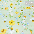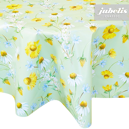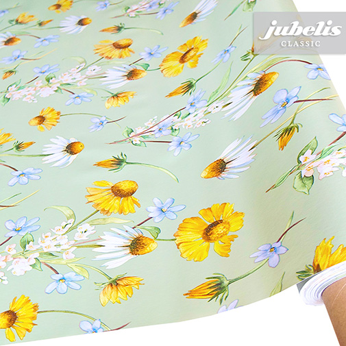 Verschiedene detailliert dargestellte Blumen befinden sich auf dieser abwaschbaren Tischdecke. Insgesamt wirkt dieser abwaschbare Tischbelag freundlich und modern und kann so recht universell eingesetzt werden. Bringen Sie mit dieser beschichteten Tischwäsche frischen Wind in Ihr Wohnumfeld. Der abwaschbare Tischbelag besitzt eine glatte und wasserabweisende Oberfläche. Einfaches Abwischen genügt, um Verschmutzungen von der Tischdecken-Oberfläche zu entfernen. Auf der Rückseite dieses Tischbelags befindet sich eine Fliesschicht, die empfindliche Tischoberflächen schützt. Somit ist dieses schöne Wachstuch sowohl für private als auch gewerbliche Anwendungen im Innen- und Außenbereich eine praktische und robuste Tischwäsche. Das Wachstuch ist hier als passgenaue Tischdecke, Meterware oder ganze Rolle mit einem zusätzlichen Rabatt erhältlich. Neben der Produktabbildung können Sie die gewünschte Größe und Form einfach auswählen. Profitieren Sie von dieser praktischen und schönen Tischwäsche aus Wachstuch mit ihrem guten Preis-Leistungsverhältnis.