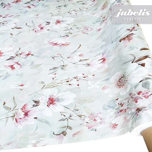 Dieses fiktive Blumenmuster erinnert an übergroße Kirschblüten, die zu einer opulenten optischen Gesamtkomposition vereint werden. Dieses freundliche Wachstuch mit dem Namen Tjara ist nicht aber nicht nur optisch überzeugend, sondern kann im Alltag durch seine Pflegeleichtigkeit viel Arbeit sparen. Der abwaschbare Tischbelag besitzt eine glatte und wasserabweisende Oberfläche. Einfaches Abwischen genügt, um Verschmutzungen von der Tischdecken-Oberfläche zu entfernen. Auf der Rückseite dieses Tischbelags befindet sich eine Vliesschicht, die empfindliche Tischoberflächen schützt. Somit ist dieses schöne Wachstuch sowohl für private als auch gewerbliche Anwendungen im Innen- und Außenbereich eine praktische und robuste Tischwäsche. Das Wachstuch ist hier als passgenaue Tischdecke, Meterware oder ganze Rolle mit einem zusätzlichen Rabatt erhältlich. Neben der Produktabbildung können Sie die gewünschte Größe und Form einfach auswählen. Profitieren Sie von dieser praktischen und schönen Tischwäsche aus Wachstuch mit ihrem guten Preis-Leistungsverhältnis.