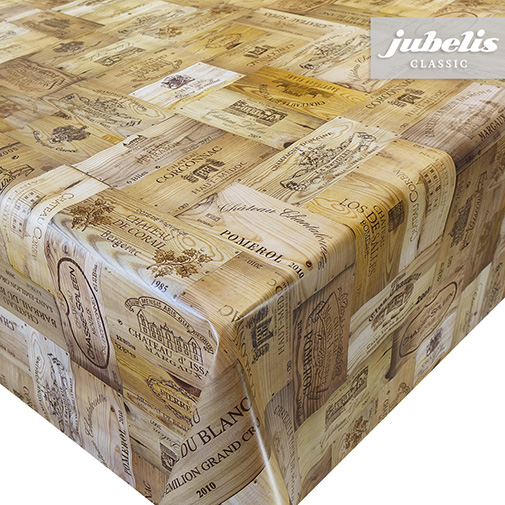 Dieses Wachstuch bietet ein ganz besonderes Muster, welches aus Stücken von Weinkisten besteht. Diese sind lückenlos aneinander gereit und verfügen über diverse Beschriftung und dekorative Elemente. Nutzen Sie dieses besondere Wachstuch zur aktiven und positiven Wohnraumgestaltung. Der abwaschbare Tischbelag besitzt eine glatte und wasserabweisende Oberfläche. Einfaches Abwischen genügt, um Verschmutzungen von der Tischdecken-Oberfläche zu entfernen. Auf der Rückseite dieses Tischbelags befindet sich eine Vliesschicht, die empfindliche Tischoberflächen schützt. Somit ist dieses schöne Wachstuch sowohl für private als auch gewerbliche Anwendungen im Innen- und Außenbereich eine praktische und robuste Tischwäsche. Das Wachstuch ist hier als passgenaue Tischdecke, Meterware oder ganze Rolle mit einem zusätzlichen Rabatt erhältlich. Neben der Produktabbildung können Sie die gewünschte Größe und Form einfach auswählen. Profitieren Sie von dieser praktischen und schönen Tischwäsche aus Wachstuch mit ihrem guten Preis-Leistungsverhältnis.